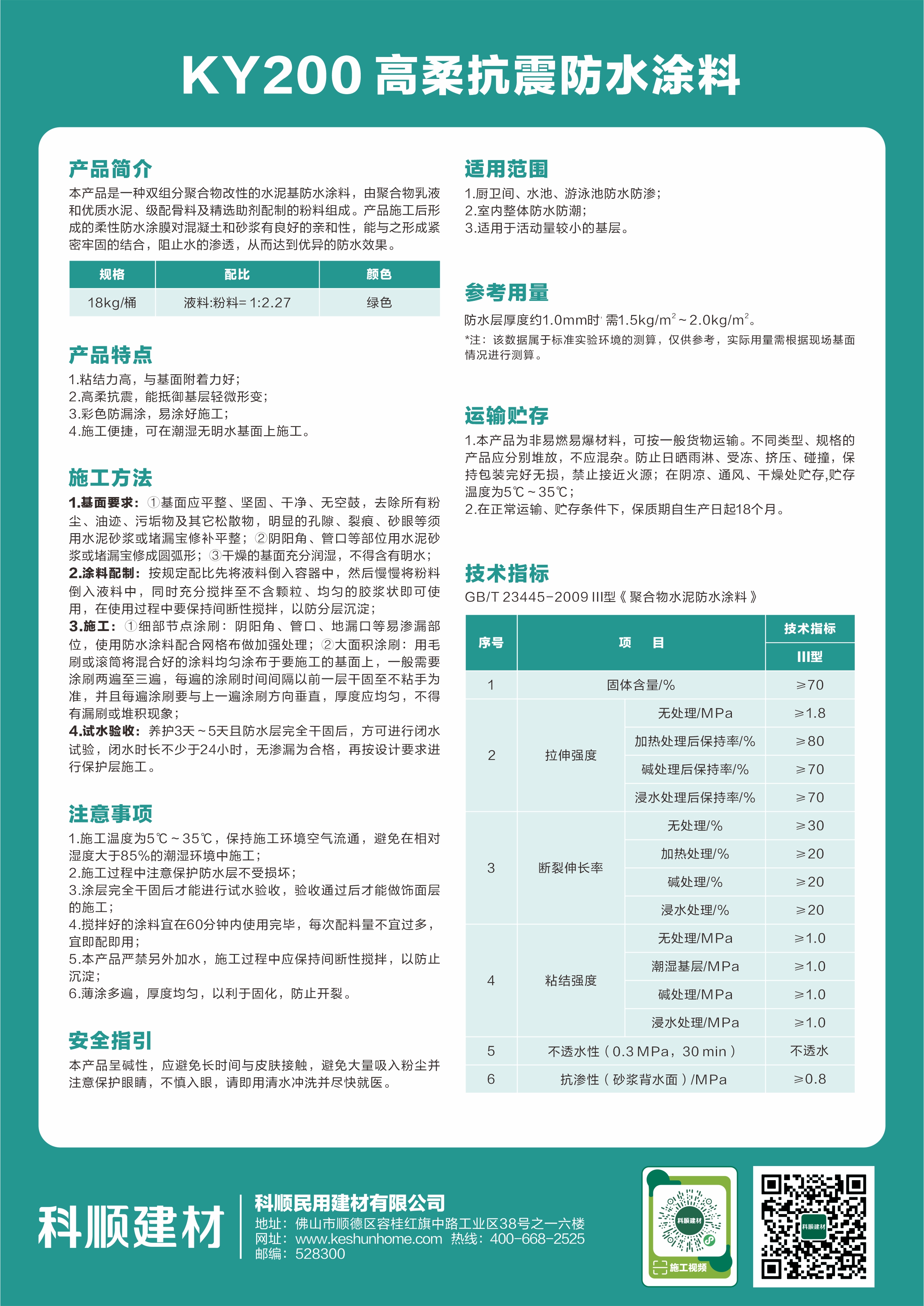 KY200高柔抗震防水涂料